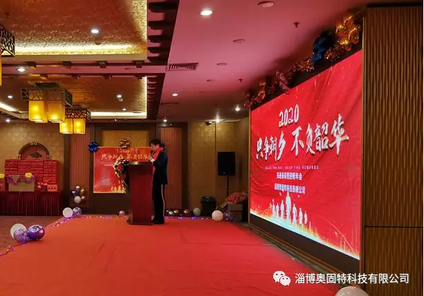 晚會(huì)開(kāi)始首先由淄博奧固特科技有限公司執(zhí)行董事王總發(fā)表致辭,并宣布2020年度先進(jìn)表彰暨迎新年會(huì)正式開(kāi)始,她代表公司感謝各位在過(guò)去一年為公司做出的貢獻(xiàn)和努力,并向全體員工致以親切的問(wèn)候和新年的祝福。
