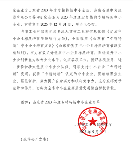 2023年5月9日,山東省工業(yè)和信息化廳公布了《關于2023山東省“專精特新”中小企業(yè)名單的通知》,經企業(yè)申報、市區(qū)審核推薦、專家評審等程序,淄博奧固特科技有限公司憑借優(yōu)越的綜合管理策略和高效創(chuàng)新能力,成功獲評山東省“專精特新”中小企業(yè)稱號。